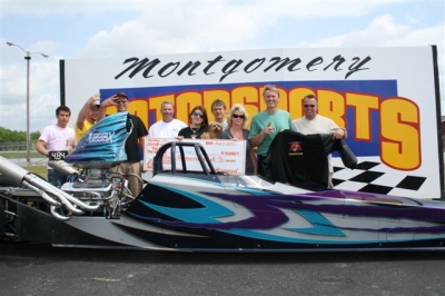| 08 SUPER 7 SERIES CHAMPION Ron Lane of Chattanooga TN. took his familiar 06 MILLER 4-LINK DRAGSTER to the final round of Saturdays first Super 7 Series $10,000.00 race of the weekend at Montgomery Motorsports Park. In the final, Lane posted a solid .006 package to defeat tough competitor Jeff Brown. While most would be satisfied with a $10,000.00 victory for the weekend, on Sunday Lane raced his way through a field of equally tough competitors to find his way into yet another $10,000.00 final round. In the second final Lane paired off with Johnny Labbous Jr. This final was decided early as Lane turned on the RED light handing Labbous the victory. Outstanding job and a great weekend for the Lane family. |
