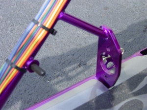 Handbrake provision in chassis, includes mounting stud and hardware for handle, gussetted master cylinder mount, gussetted brakeline slot in chassis and master cylinder push rod